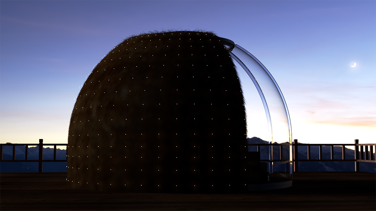 The dome room is composed of 8 pieces of PC sheets. Under normal circumstances, the main body of the room can be installed within 3 hours, and the construction is convenient and fast.