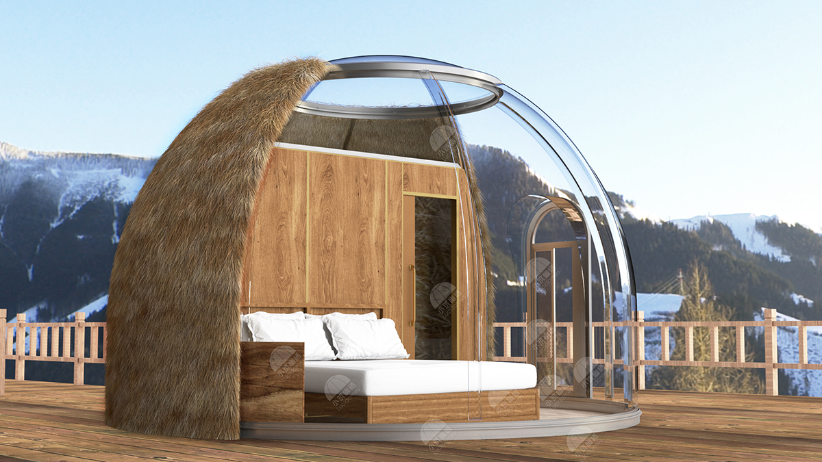 It is suitable for use in the seaside; With an area of 16 square meters and a space height of 3.2 meters,customers will not feel any depression inside the clear dome.
